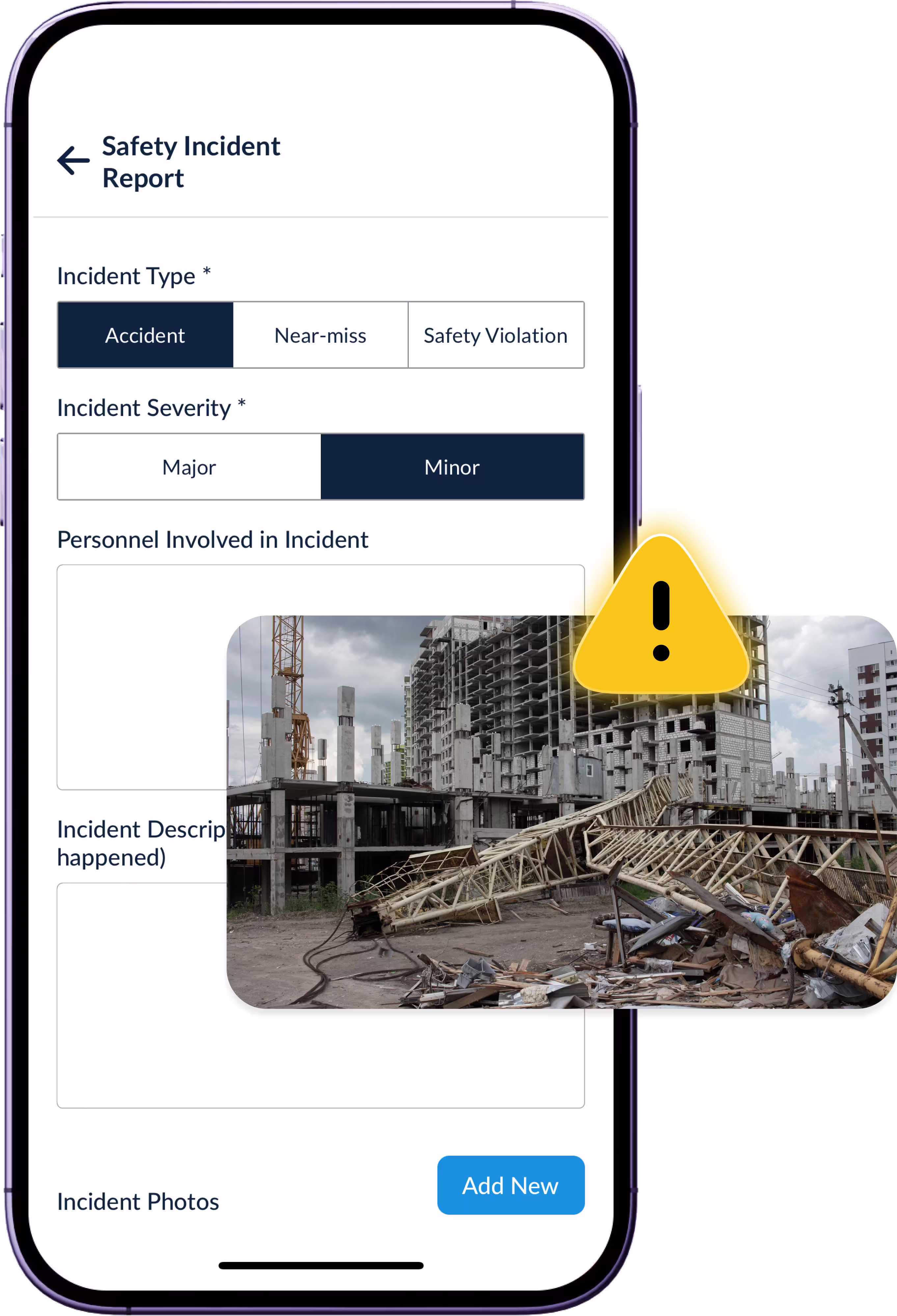 Reduce accidents and near-miss incidents by identifying them through daily inspections and emphasize that safety protocols are adopted on-site. Empower your teams to identify risks before they escalate and create a safer work environment for everyone.