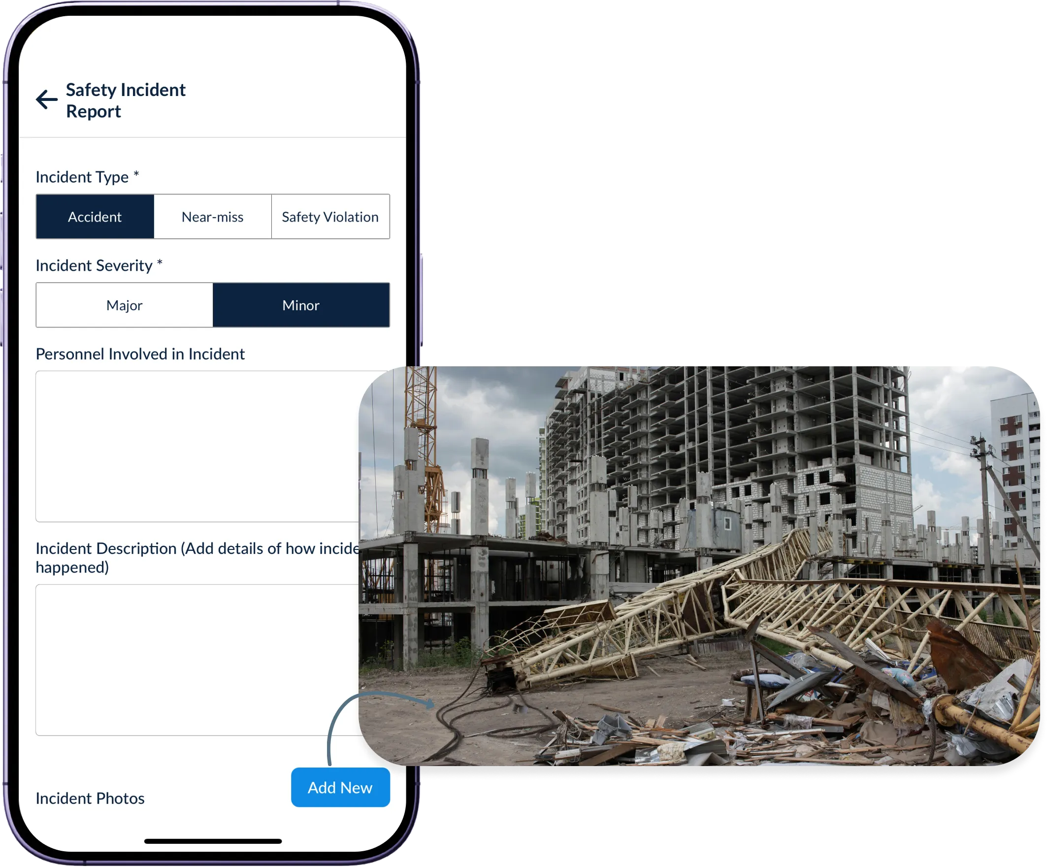 Reduce accidents and near-miss incidents by identifying them through daily inspections and emphasize that safety protocols are adopted on-site. Empower your teams to identify risks before they escalate and create a safer work environment for everyone.