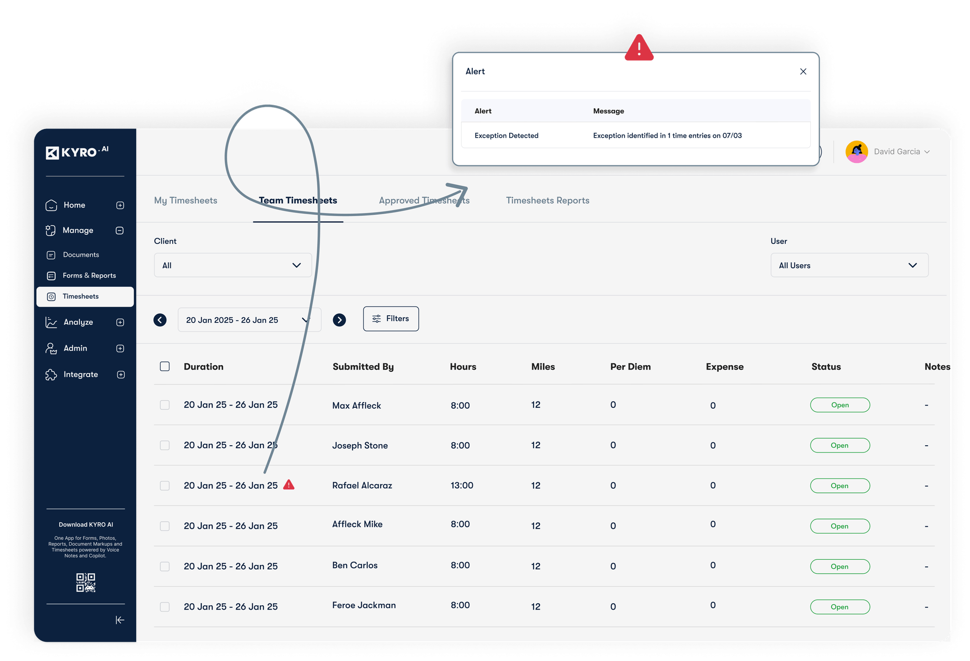 Automate timesheet creation and catch discrepancies early to ensure accurate payroll and client invoicing, minimizing administrative delays during storm recovery.