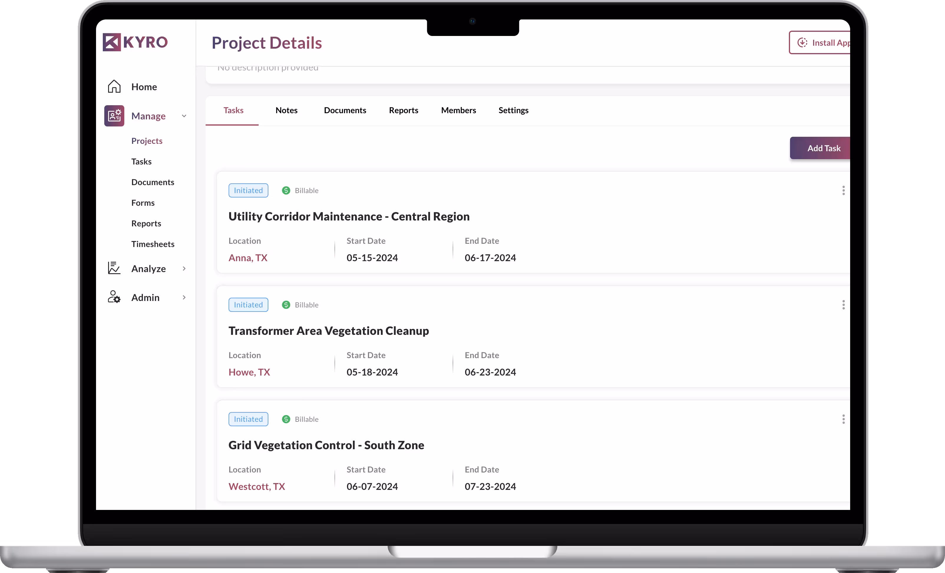 Effortlessly create projects, assign tasks, and manage priorities based on severity. Ensure optimal execution and timely completion of vegetation management activities with KYRO’s simple project management.