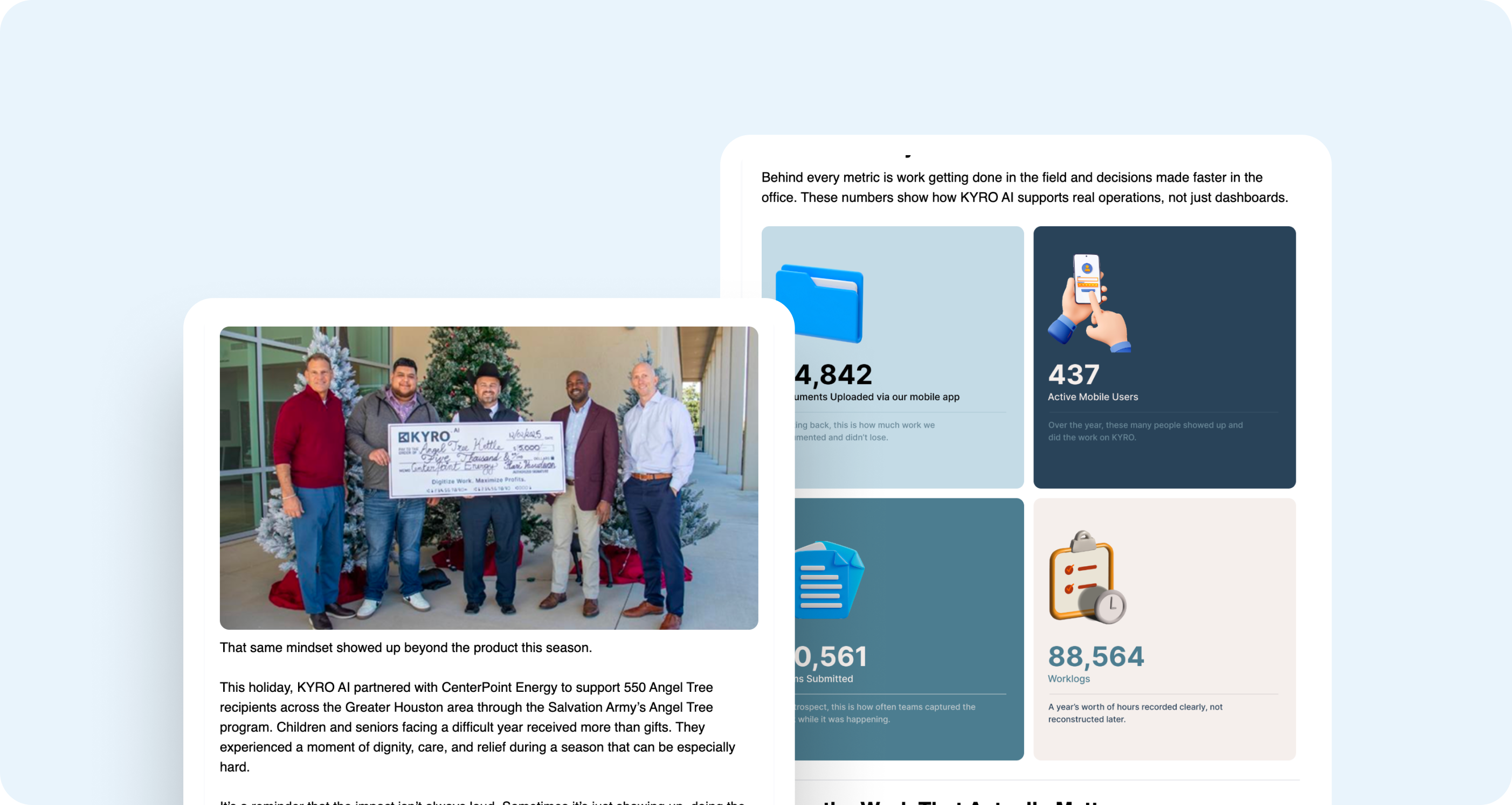 Kyro has provided a very helpful solution through its software. The data collection, business intelligence and documentation software have improved our ability to run our projects
